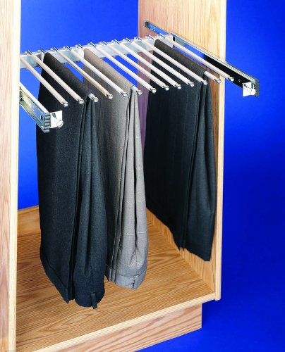 PSC Series 14" Depth Pull Out Pants RackKeep your closet manageable and chaos free with Rev-A-Shelf s Chrome Pull Out Pants Rack. This exceptional closet solution is made of heavy gauge chrome and features distinctive moveable fingers for easy access and unparalleled convenience.Wasted space is a thing of the past! Rev-A-Shelf is the world s largest manufacturer of functional storage organizing products. Rev-A-Shelf can offer both the professional and the homeowner the finest cabinet storage solutions available.Features:Dimensions: 23.75" Width x 14" Depth x 3" HeightAdjustable width up to 24.5"Contains (1) frame assembly, (13) rods, full-extension slides, instructionsPolished ends prevent snagsMoveable fingers for easy access Read more...